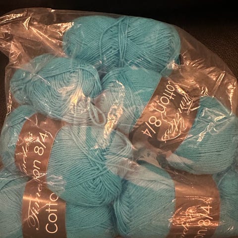 3 nøster fra samme parti. 1 nøste var strikket med, men alt er rettet opp og det er hele nøstet.