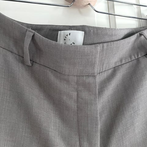 Splitter NY og ubrukt dressbukse fra Five Units selges. Modellen heter Clara, størrelsen er W29 og fargen heter Oak Melange - en nydelig, kald beigefarge. Buksa har rette ben med en liten flare nederst, den har lommer foran og beltehemper. Nypris var. 1.500,-.