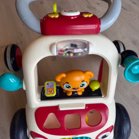 Fisher-Price Aktivitetsgåvogn med ratt og hjul. Gåvognen har flere interaktive elementer som ratt med lyder, knapper og hjul som gjør den egnet for små barn i ganglæring. Laget i plast med fargerike detaljer.