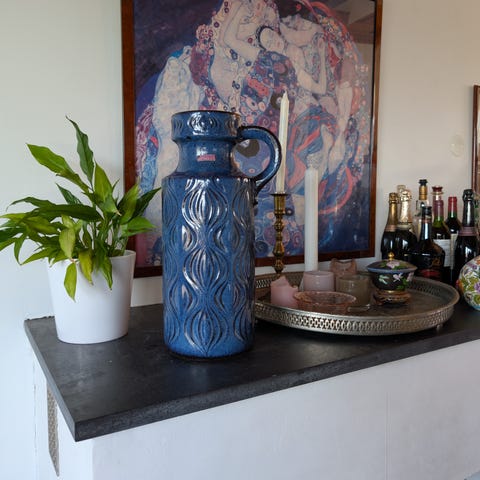 Big O fat i blå fra Matias Moellenbach. Stort fruktfat i porselen.