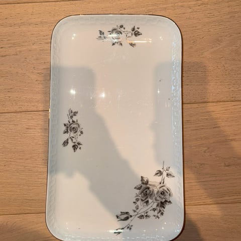 Nydelig fat med blomster og gullkant