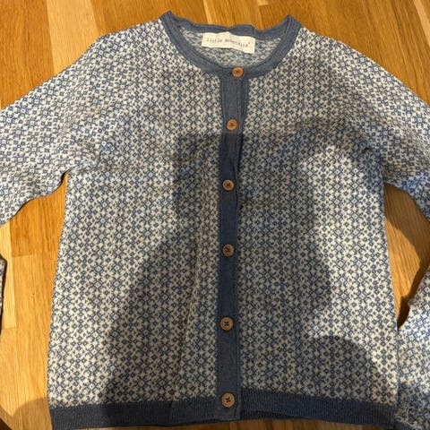 Str 7-8 år, men kan passe under og over. Gråblåfarge/jeansblå.