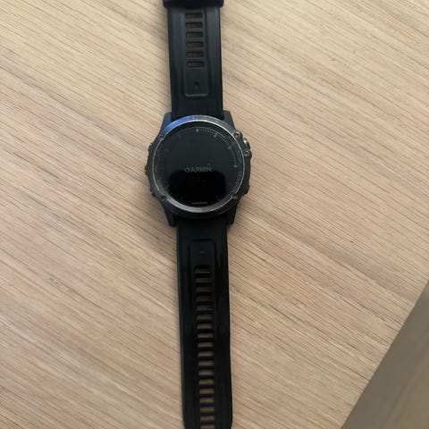 Garmin Fenix Sapphire 3 HR smartklokke med svart rem. Inkluderer ladekabel og klipplader for lading via USB.