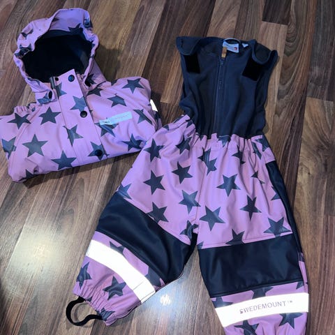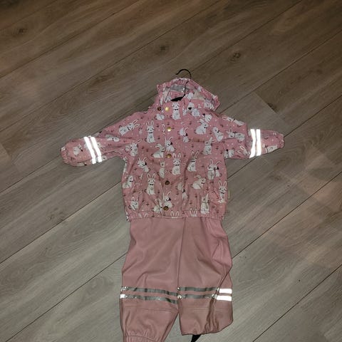 Foret regnbukse og jakke i str 70. Helt nytt, prøvd på og bare blitt hengende i skapet og nå er det blitt for lite. Lappen er tatt av, men ikke brukt ute.