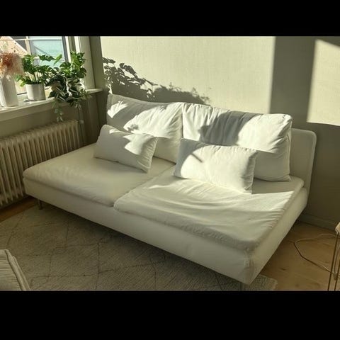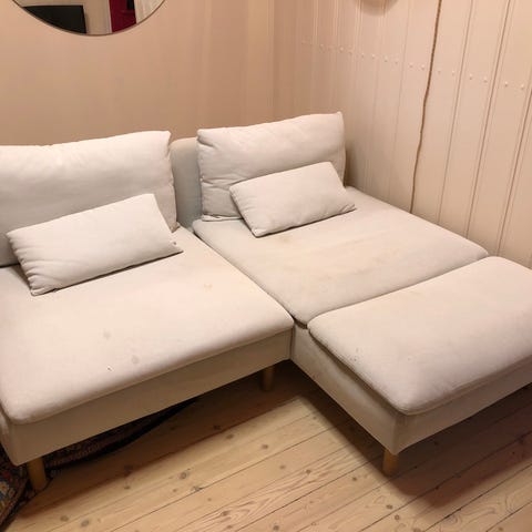 Godt brukt, men solid. Trekk må vaskes godt, evt. byttes. Må hentes.
