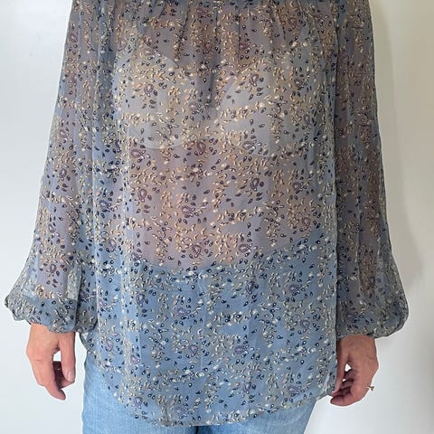 Meget pent brukt Katrin Uri, Rixo freedom bluse / topp . 100% bomull . Str 36. Strikk nederst ermer, rysjer rundt v hals og som detaljer på ermer. Hbo 499 kr