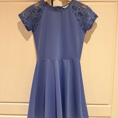 Cubus blå kjole i størrelse 146 for jenter. Laget i behagelig materiale med korte ermer og dekorative detaljer på skuldrene. Passer til hverdagsbruk og ulike anledninger.