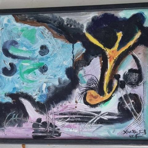 Vakkert og stemningsfullt originalmaleri av den kinesisk-norske kunstneren Yang Zhu (født 1962, Beijing).