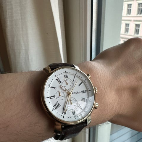 Fossil Boyfriend Sport Chronograph Blue Dial Blue Leather Strap, modell ES4113. Fremstår som ny. Trenger nytt batteri