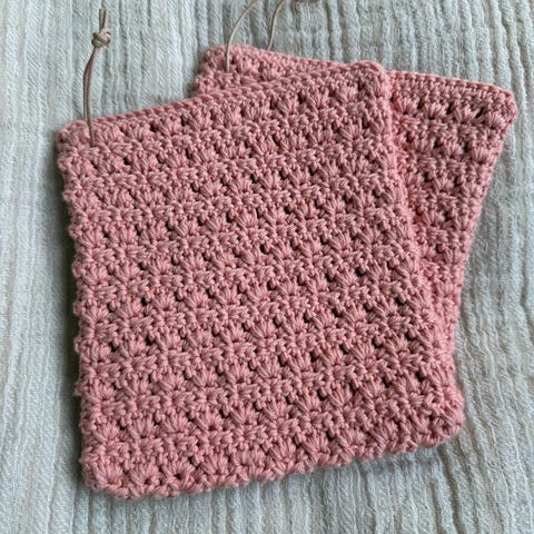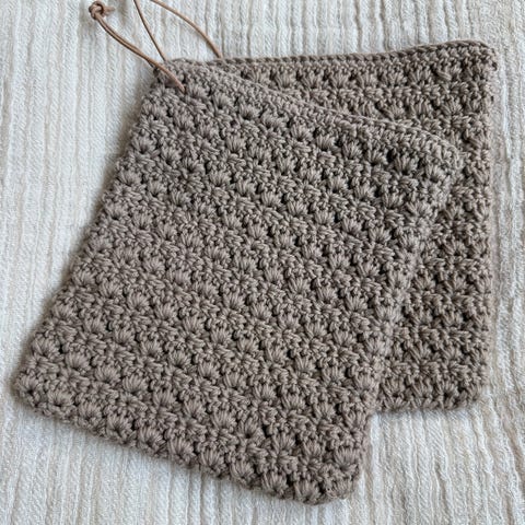 Grytekluter heklet I drops Paris bomullsgarn selges kr 75 pr. Par