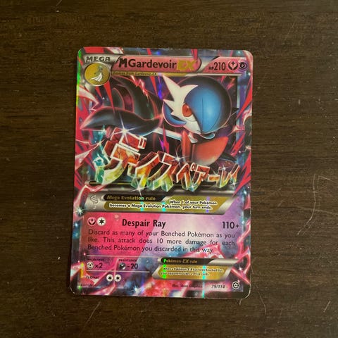 Pokémon M Gardewoi EX samlekort med angrepet Brilliant Arrow. Kortet har fargerik illustrasjon og er en del av Pokémon Trading Card Game.