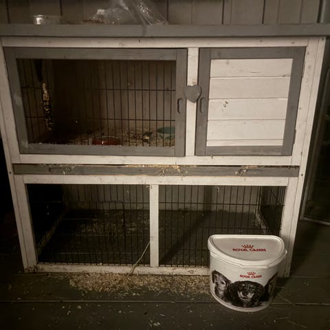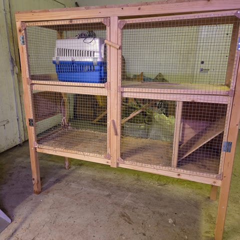 Bur eller "hus" for marsvin. Dette er for utendørs bruk. Det har kun vært marsvin i dette, ikke andre gnagere.