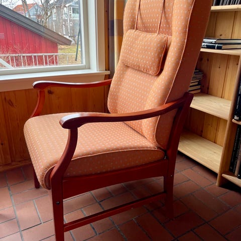 Høykvalitets-lenestol med justerbar rygg. Nakkestøtte følger med. Kjøpt våren 2025, lite brukt. Ingen bruksmerker.