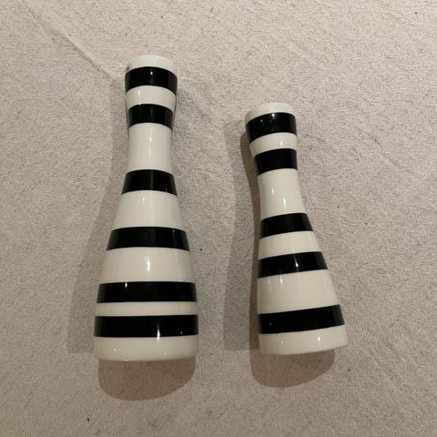 Mål: høyde 24.5 cm, diameter topp 3,5 cm, diameter bunn 7 cm.
