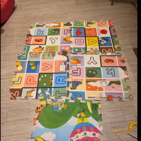 Brukt lekematter / puslespill. Mangler noe få små deler.