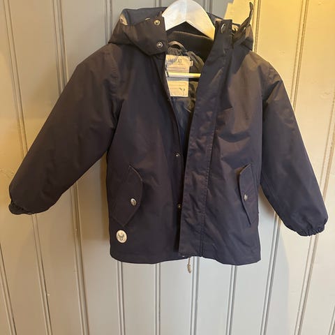 Kjempefin og praktisk jakke fra Wheat selges. Jakken kan brukes på tre ulike måter. Vindjakke, boblejakke eller begge to sammen som en bra vinterjakke. Festet til hverandre med glidelås. Jakken er i god stand minus at poden har tygd litt på kanten av vindjakken, se bilde.
