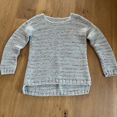 Pent brukt. Er omtrent størrelse m. Vet ikke garn da den er kjøpt på finn, men veldig myk og god.