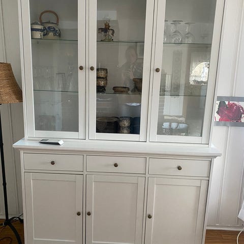 Alexandra vitrineskap selges. I grei stand. Noen små merker noen få plasser, og noen små malingsprikker oppå, som ikke synes. Ellers i god stand.