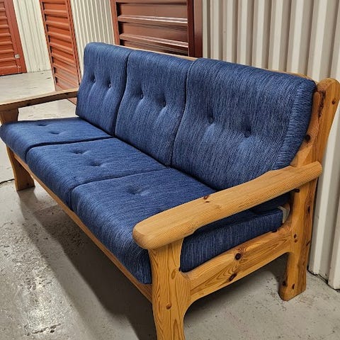 Pent brukt sofa selges. Blitt bleket av sol. Har stått på ei lite brukt stue på hytta.