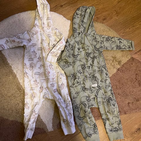 Pent brukte. Ingen hull. Hele strikker under føttene. Mangler hette, men den er bare i veien på små barn 😊. Passer ypperlig til barnehagebruk.