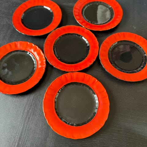 I god stand, lette bruksmerker. Litt slitasje på den sorte fargen på kanten av asjetten.