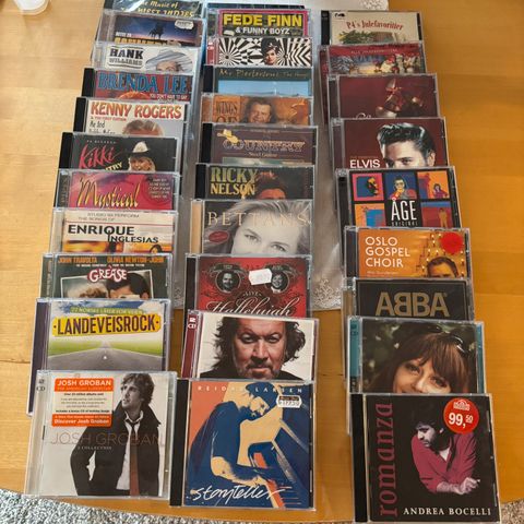 Et utvalg av musikk-CDer fra forskjellige artister og sjangere. CD-ene er i standard plastomslag og inneholder ulike musikkstiler. Passer for samlere eller musikkinteresserte, til salgs, kom med bud.