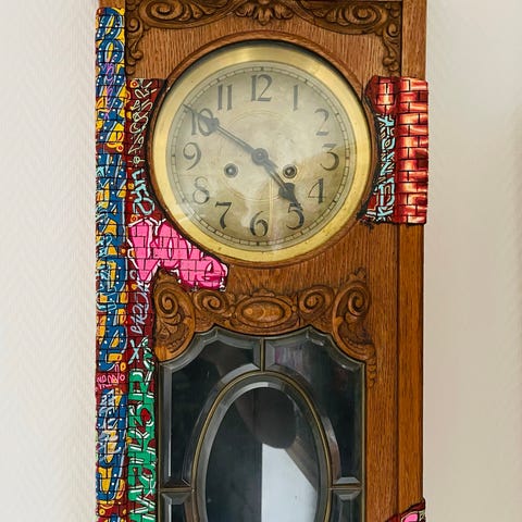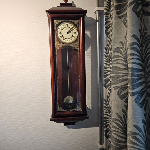Veggur med pendel og dekorative detaljer
