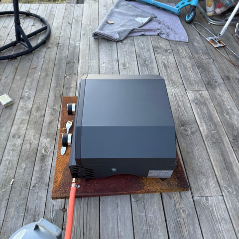 Ovnen skal tennes selv og er kun brukt en gang av oss i sommer. Ovnen ble kjøpt våren i fjor og byttet på power fordi den første ikke tente seg selv.