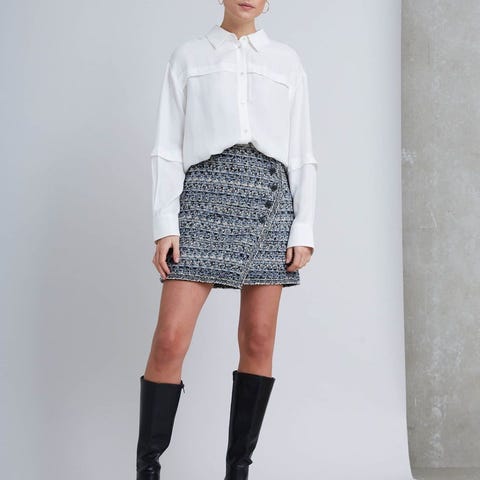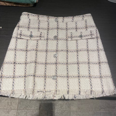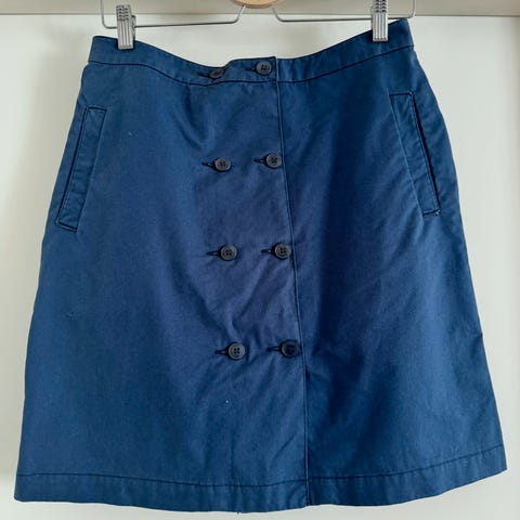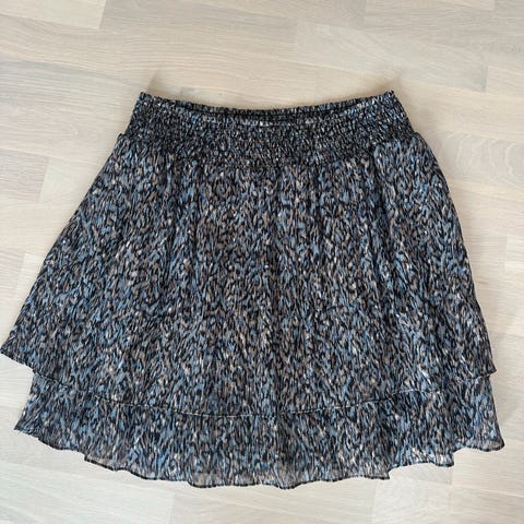 Nydelig skjørt i brunt fra Bruuns Bazaar i str. 40/L. Ny med tagg. Aldri brukt men har noen merker etter henger. Dette vil ikke synes ved bruk av belte. Se bilder. 50% polyester og 50% polyurethane