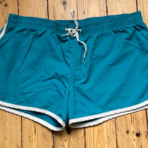Mørk blå med hvite blomstrer viskose shorts med 20 vm glidelås bak og stretchy midje. 2 side lommer. Lengde ca 50 cm, midje ca 70 cm i omkrets. Kan brukes med belte