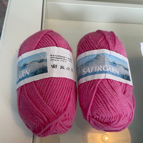 Diverse farger med Safir garn fra Sparkjøp. 14 helt nye nøster og litt som er tatt av.