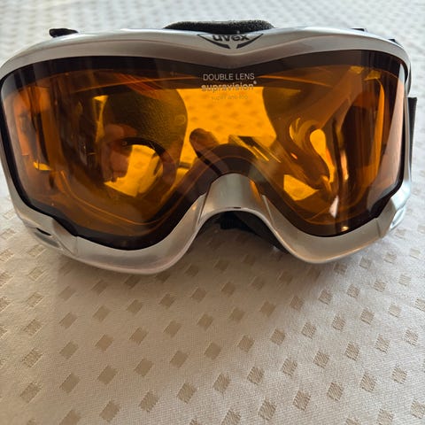 Uvex skibriller med blå ramme og oransje linse. Brillene har et stjernemønster på stroppen og er designet for å beskytte øynene under vintersport. Passer for både voksne og ungdom. Stroppen er elastisk for god tilpasning.