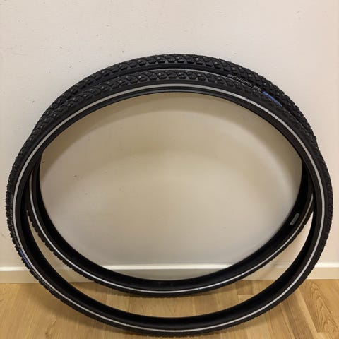 Schwalbe Marathon Winter Plus sykkeldekk med dimensjon 28x2.0 (50-622) og pigger for bedre grep på is og snø. Dekket er laget for vinterbruk og har slitesterkt materiale som gir god beskyttelse og lang levetid. Passer til sykler med 28 tommers hjul. Jeg har 2 stk. en er helt ny, den andre ble brukt i en sesong. Selger den nye for 500 kr, den brukte for 400 kr.