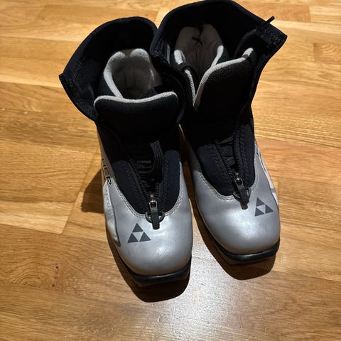 Fischer X-Race langrennssko i størrelse EU 32. Skoene har svart og gul farge med glidelås foran for enkel på- og avkledning. Designet for langrenn med fokus på passform og komfort.