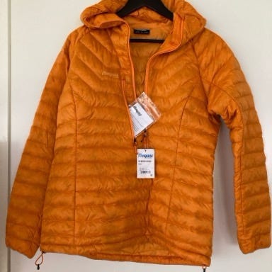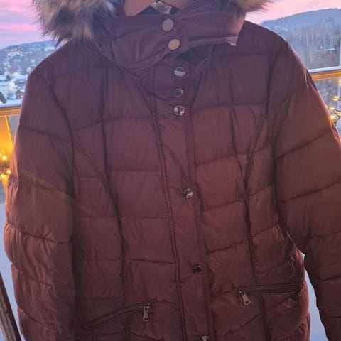 Pen, god og varm polstret mørkebrun vinterkåpe.