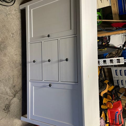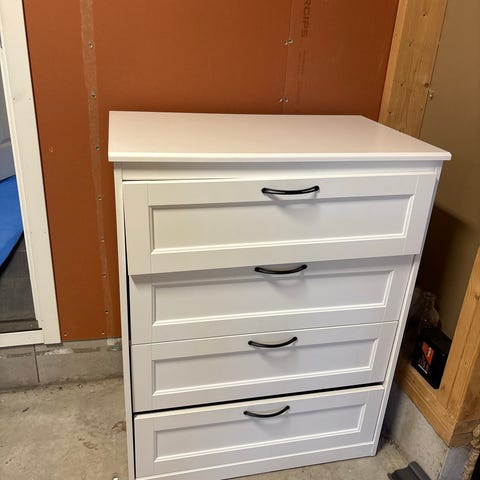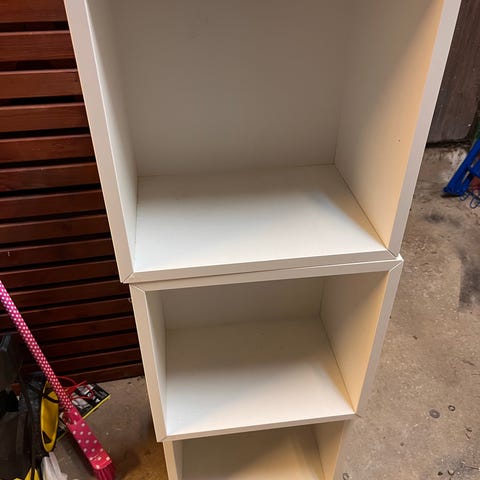 Selger 2 stk hvite kjøkkenmoduler/veggskapstamme med 2 stk skuffer i hver seksjon - 40x40x60. Lite brukt. Kan brukes som benk med benkeplate på toppen. Stort sett stått i en bod for oppbevaring