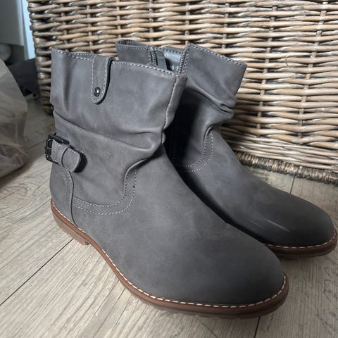 støvler for dame i størrelse 38. Beigefarget med strikkdetaljer øverst og snøring foran. Egnet for hverdagsbruk og kaldere vær.