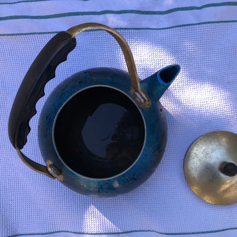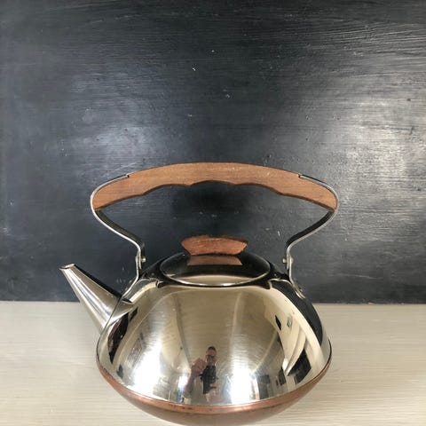 Triangel kaffekjele i rustfri stål,kobberbunn og trehåndtak.