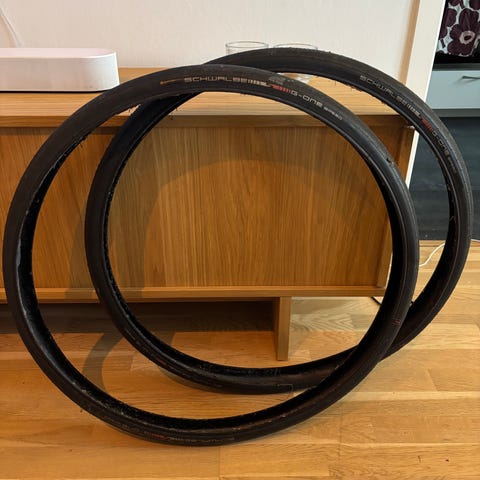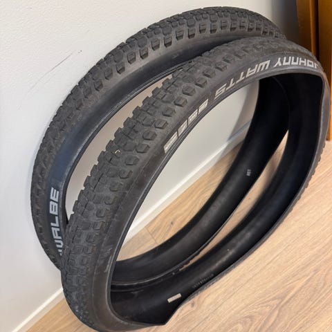 Selger 2 stk dekk til 27,5. Schwalbe Thunder burt 2,1 og Schwalbe G-one bite 2,1. Begge tubeless easy. Lite brukt. 300,- pr dekk. Litt rester av guffe igjen i det ene, kan lett fjernes.