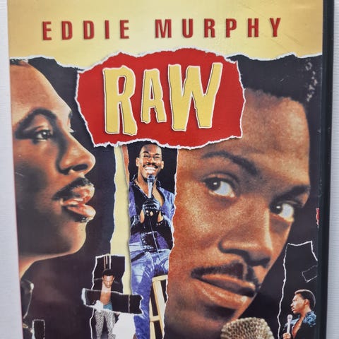 Eddie Murphy Raw DVD med stand-up show. Produktet har standard DVD-format og inneholder Eddie Murphys opptreden. Egnet for visning på DVD-spillere. Ingen spesifikke farge- eller størrelsesdetaljer relevant for produktet.