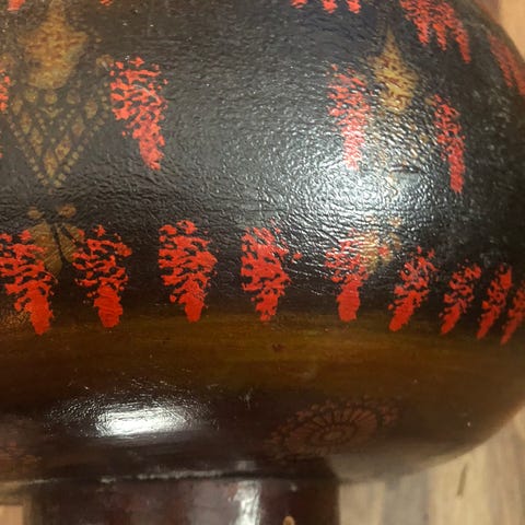 Fra 19 40/50ca. Made in England. Med asiatisk motiv, flat og uten bulker, lite slitasje, 44,5x34,5 cm