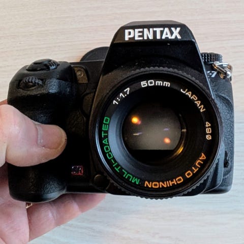 • Samsung GX-10 (Pentax K-fatning) – 10,2 MP APS-C sensor med innebygd bildestabilisering kjøpt i 2006. Solid og pålitelig kamera med klassisk speilrefleksfølelse og god bildekvalitet i dagslys.