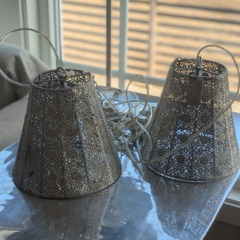 Selger 2 stk taklamper med kjetting som er ca 84 cm lang.