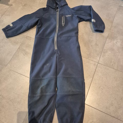 Reflex softshelldress i svart farge, størrelse 110, unisex. Laget for barn med funksjonell design som dekker hele kroppen, egnet for utendørs bruk.