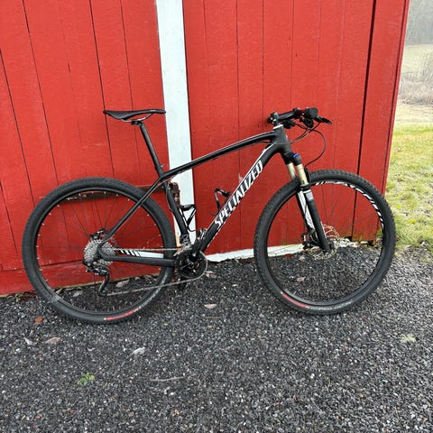 Specialized Fate terrengsykkel for herre med svart og hvit farge. Sykkelen har RockShox dempegaffel og Maxxis dekk forran nytt Continental dekk bak. Ramme er i karbon så utrolig lett og komponenter er tilpasset terrengsykling. Selges med tungt hjerte da dette er en veldig god sykkel. Nylig service Oktober til 3,500,- kr på XXL Tønsberg