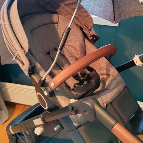 Selges sittedelen til Stokke trailz vogn. Nesten ubruk, ser ut som ny. Selges med pute.