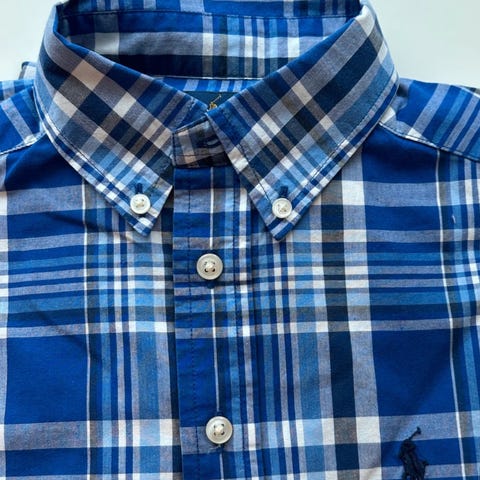 Ralph Lauren Polo Skjorte i blå/ hvit stripet mønster, størrelse 14 år for gutt.