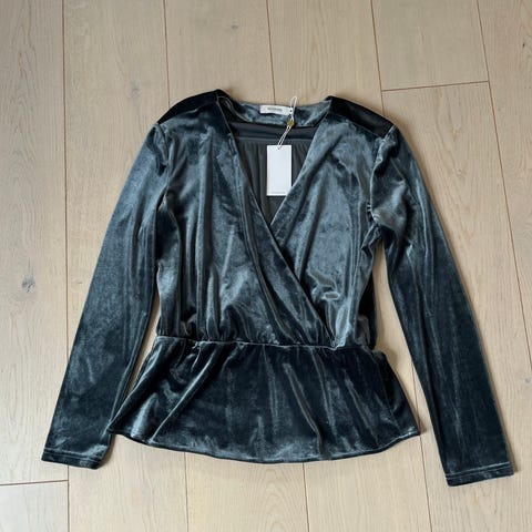 Bluse fra Riccovero str 36, dus rosa med sølvdetaljer. Lange ermer, innsvingt modell. Pent brukt