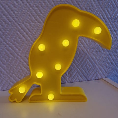 Fire røde lamper og fem gule lamper som kan henges inne og ute