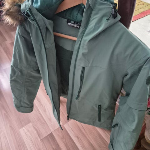 Pen jakke som sitter fint på. Har vært en favoritt hos datteren min. Den har et par bruksmerker, se bilder. Ellers pen.